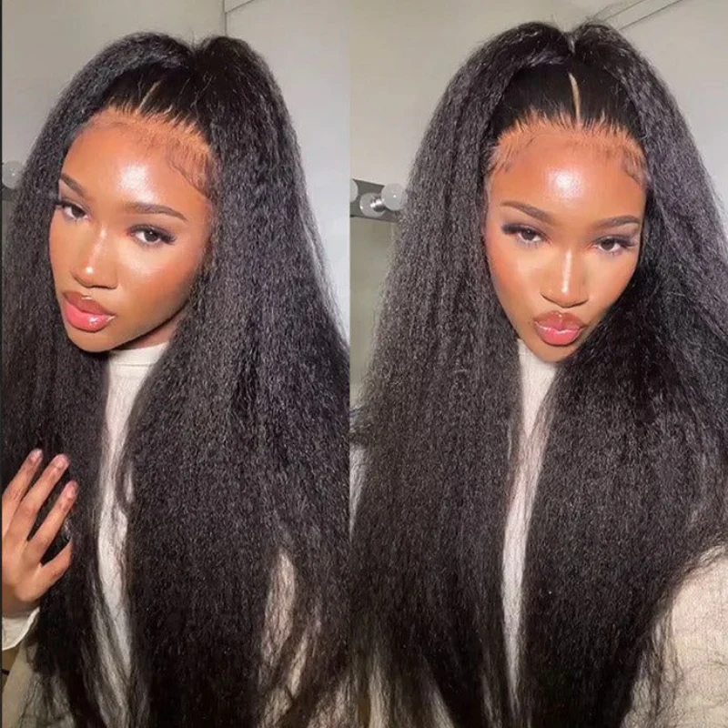 ALIGLOSSY 13x4 Glueless Kinky Straight Lace Front Wig HD Transparent Lace Human Hair Wigs