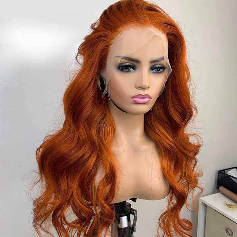 ALIGLOSSY 180 Density 13x4 HD Lace Front Ginger Body Wave Hair Wig