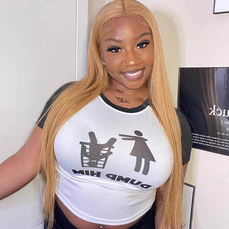 ALIGLOSSY 200 250 Density Honey Blonde 13x4 HD Transparent Straight Lace Front Wig #27