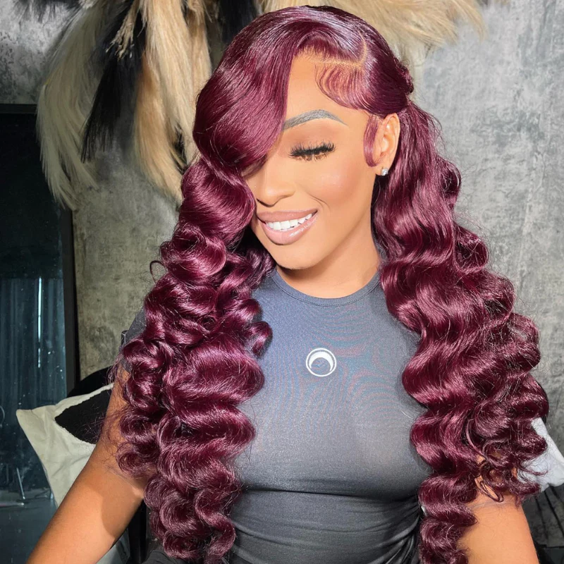 Aliglossy 250 Density 99J Red 13x4 Lace Front Wand Curls Loose Deep Wave Human Hair Wigs