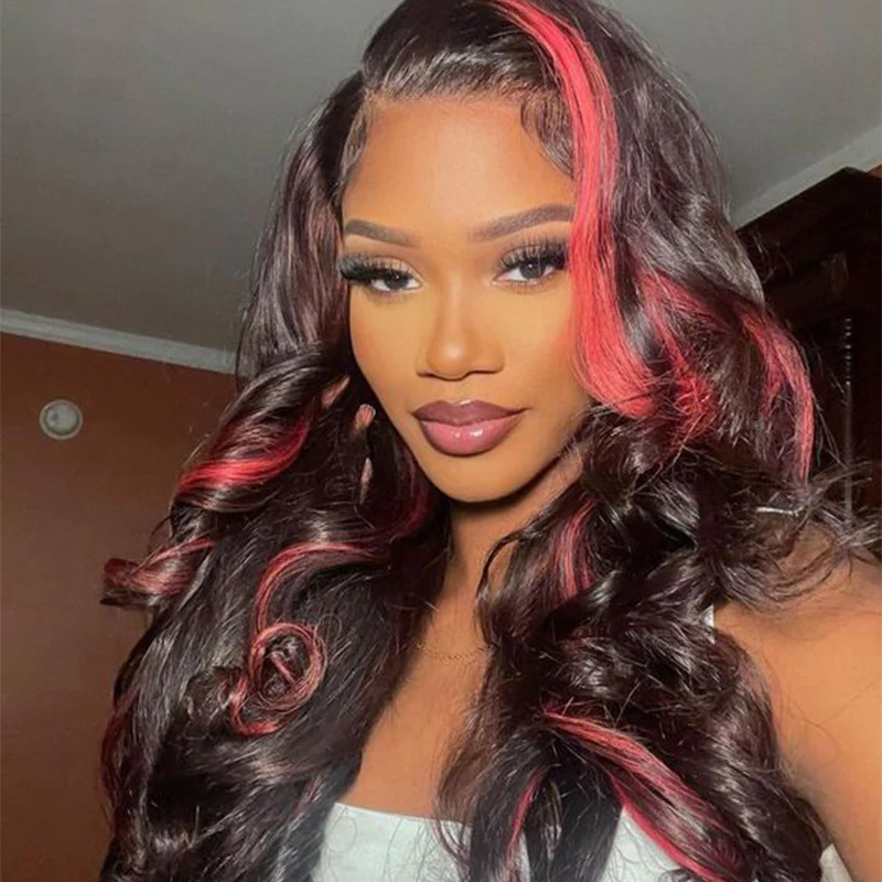 The ALIGLOSSY Burgundy 99J Red Highlight Body Wave 13x4 Lace Front Wig features a stunning body wave texture with vibrant burgundy 99J red highlights, adding a bold and stylish touch to your hairstyle.