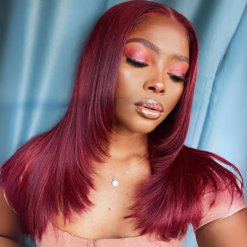 ALIGLOSSY Layered Cut Wig 200 250 Density 99J 13x4 HD Transparent Lace Frontal Wigs