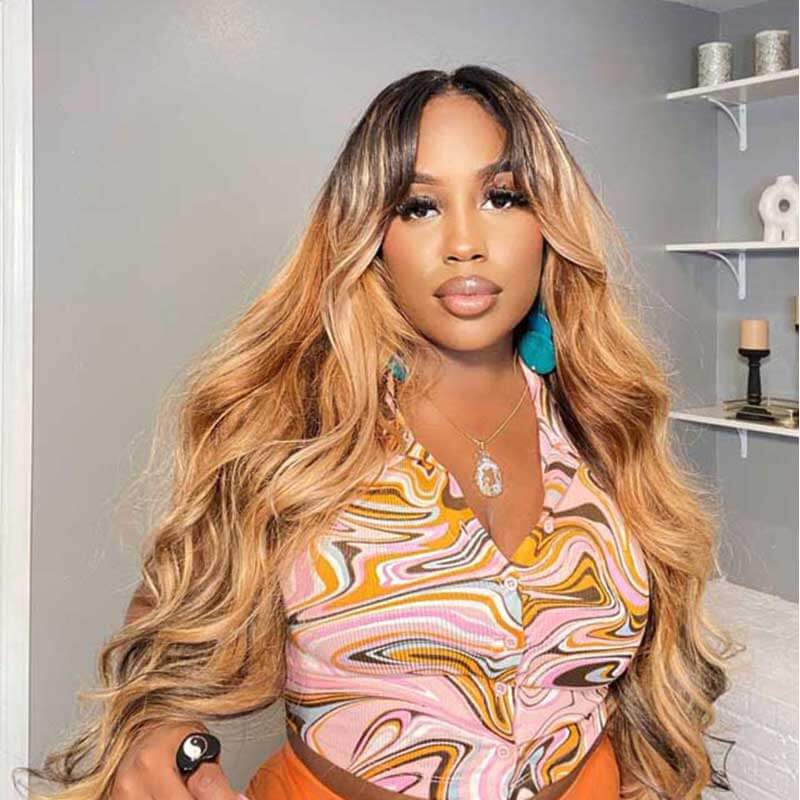 ALIGLOSSY Ombre 1B27 13x4 Glueless Body Wave Lace Front Wig HD Transparent Lace Human Hair Wigs