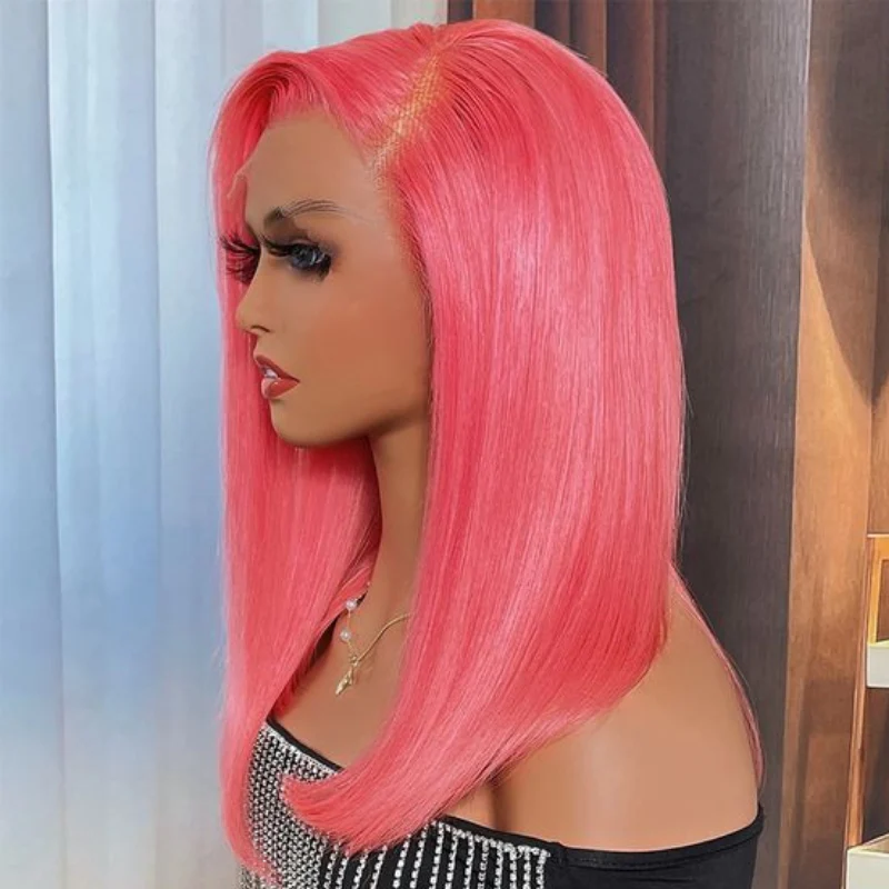 The ALIGLOSSY Short Bob Straight Lace Front Wig features a chic and timeless short bob length with a sleek and straight texture, offering a sophisticated and versatile hairstyle.
