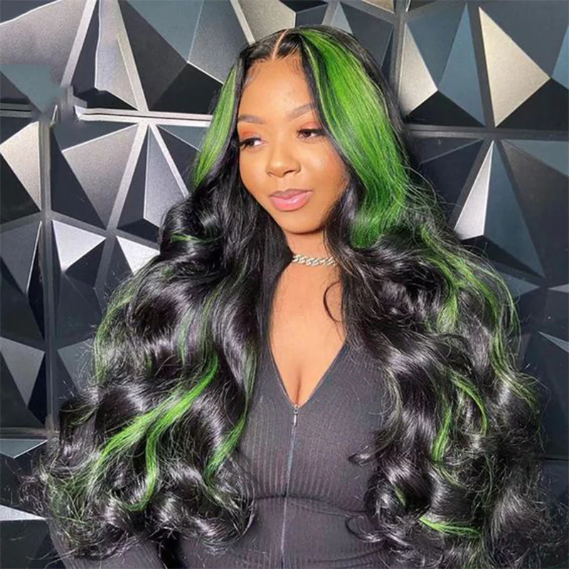 ALIGLOSSY Black Green 180% Density 13x4 Transparent Lace Frontal Human Hair Wigs